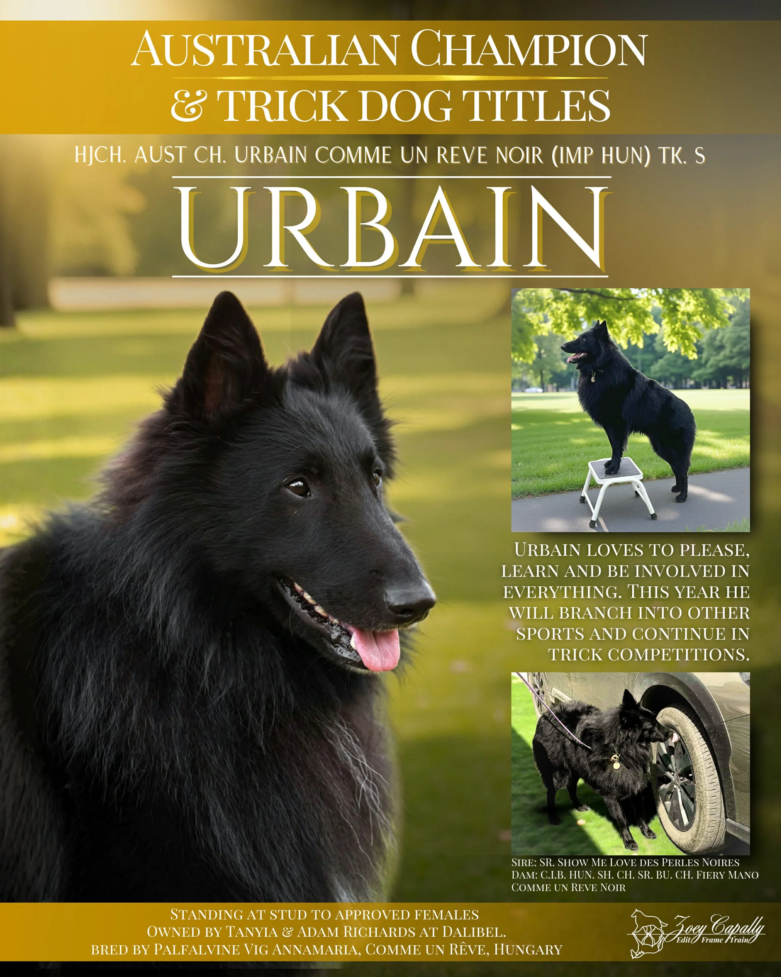 Tanyia and Adam really appreciate Annamaria Palfaluine-Vig from Comme Un Reve Noir Kennel, Hungary working with us to enable Urbain’s arrival in Australia.